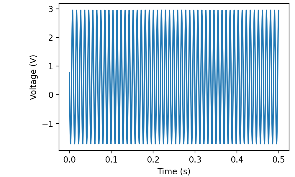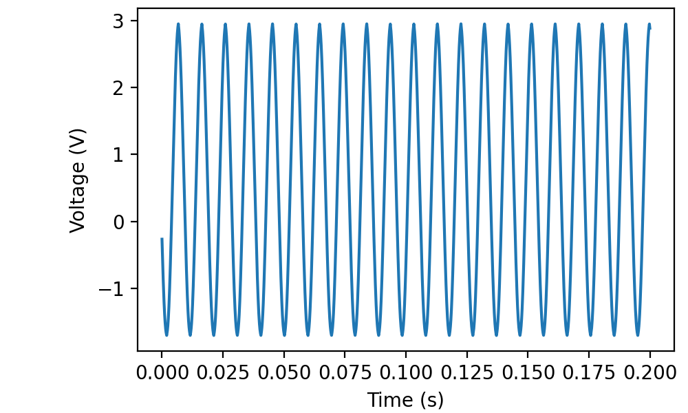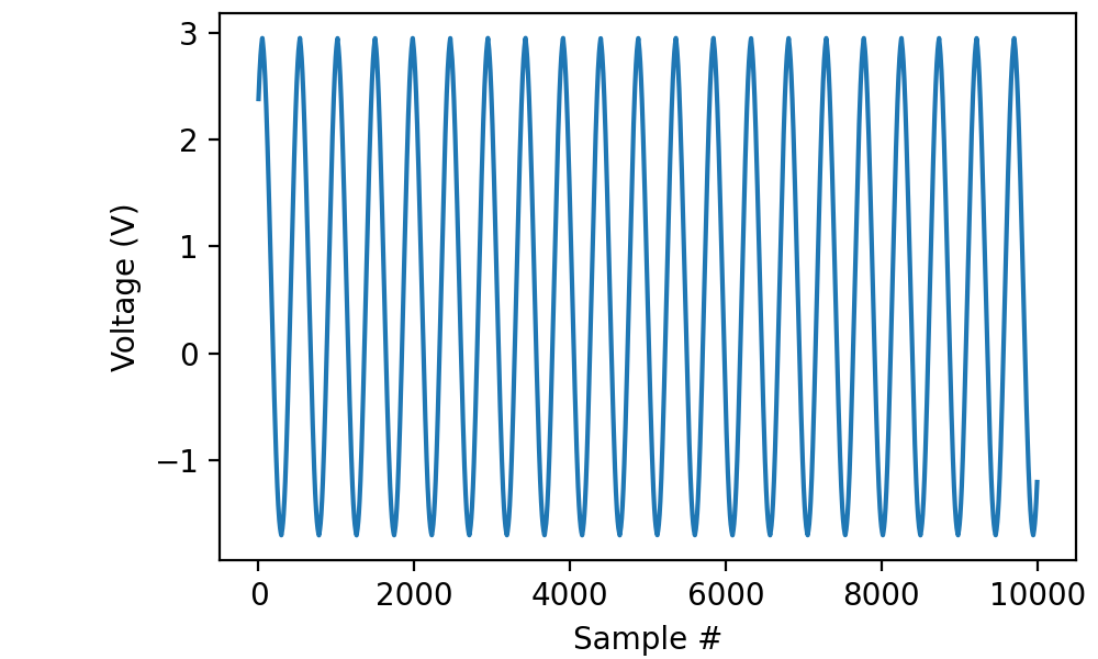 Read 200 milliseconds worth of data from channel “ai0” with a sampling frequency of 50 kilohertz and display the results using matplotlib: