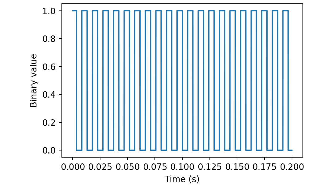 Read 200 milliseconds worth of data from line “di0” with a sampling frequency of 50 kilohertz and display the results using matplotlib: