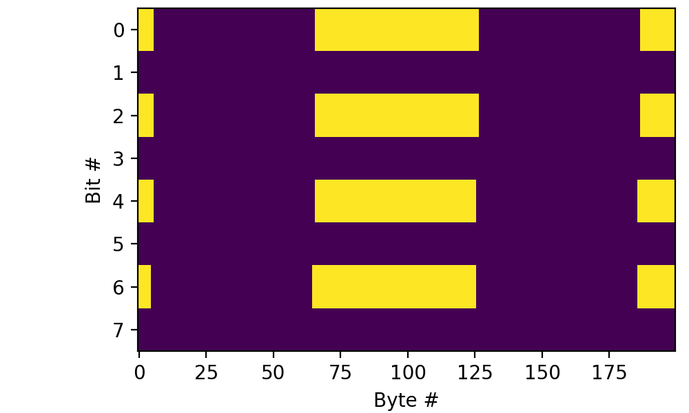 bits = np.unpackbits(data, bitorder='little').reshape(-1, 8).T